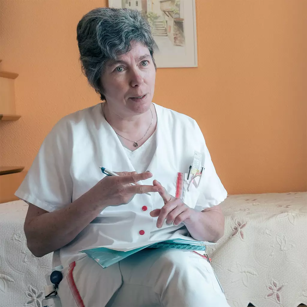 « Mon rôle est d’organiser la sortie du patient, lorsque cela nécessite la mise en place d’un réseau à domicile, d’un court séjour ou d’un placement. Mon intervention permet d’apporter un soutien au patient dans la préparation de sa sortie en le gardant toujours au centre de la discussion. »
