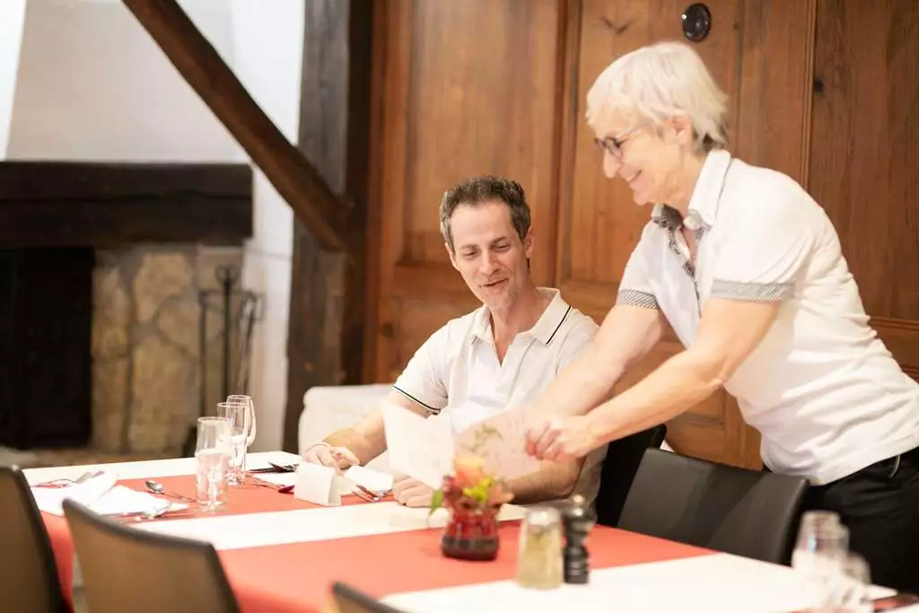 Sur réservation et à votre charge, vos proches peuvent prendre les repas avec vous, dans notre carnotzet ou notre restaurant "La Villa".